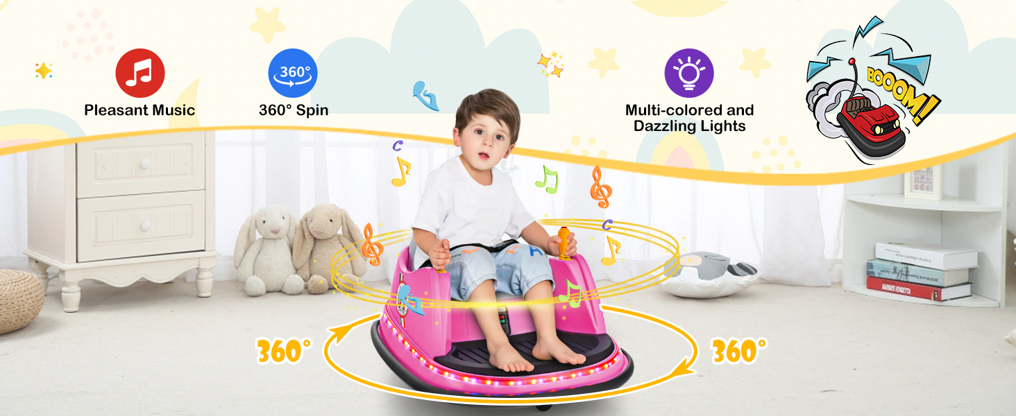 Various Entertainment Features: The built-in music and horn will delight your little one when they ride this car, adding more fun to their riding time. Meanwhile, the colorful flashing light can also make the bumper car more attractive for both boys and girls aged 2-5 years old.