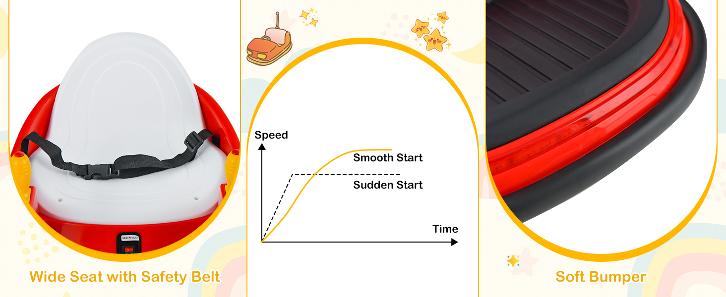 Multiple Safety Protection: To ensure kid's safety, we design it with various safety protection. Adjustable safety belt helps to firmly fix your little one into the seat. Soft bumper design ensures safe collision. In addition, slow start function prevents sudden acceleration. It also has passed ASTM and CPSIA certifications for higher safety.