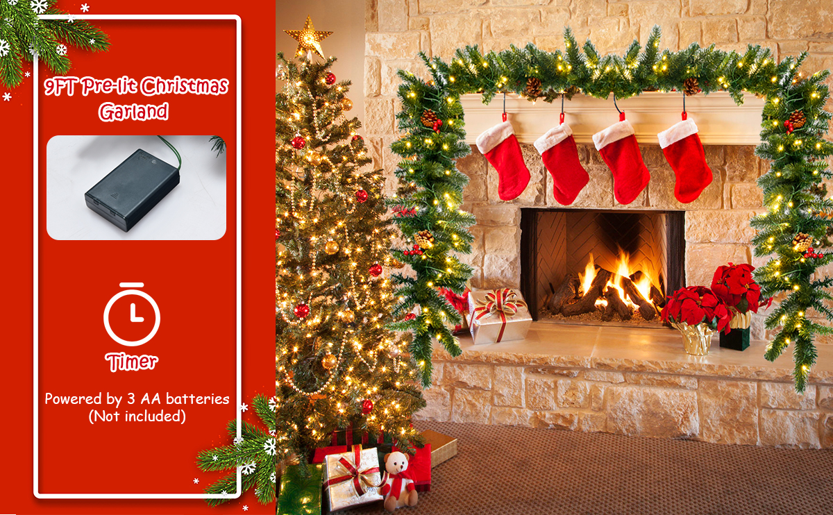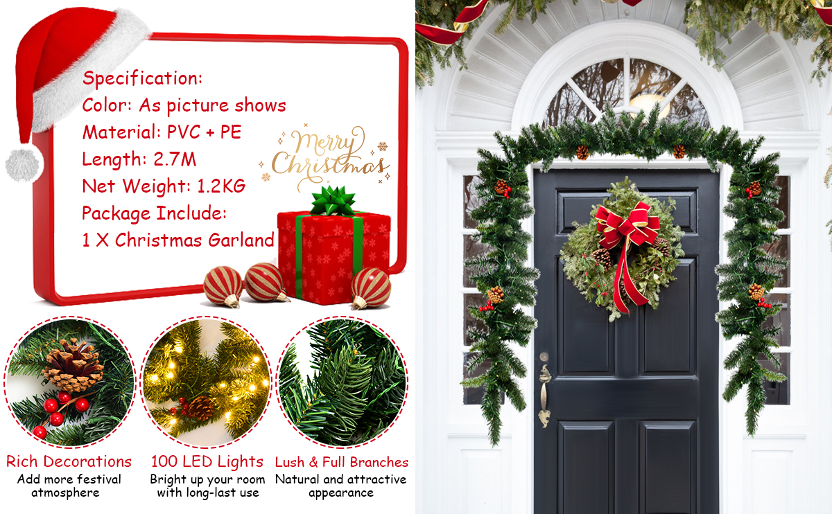 The 270cm Pre-lit Christmas garland serves to accompany with you through the Christmas.