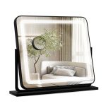 Sturdy Frame and Well-made Details: The solid aluminum frame and round corner design enhance stability and safety. In addition, supported by a widened & stable metal stand, the vanity mirror can be placed firmly on your dressing desk.